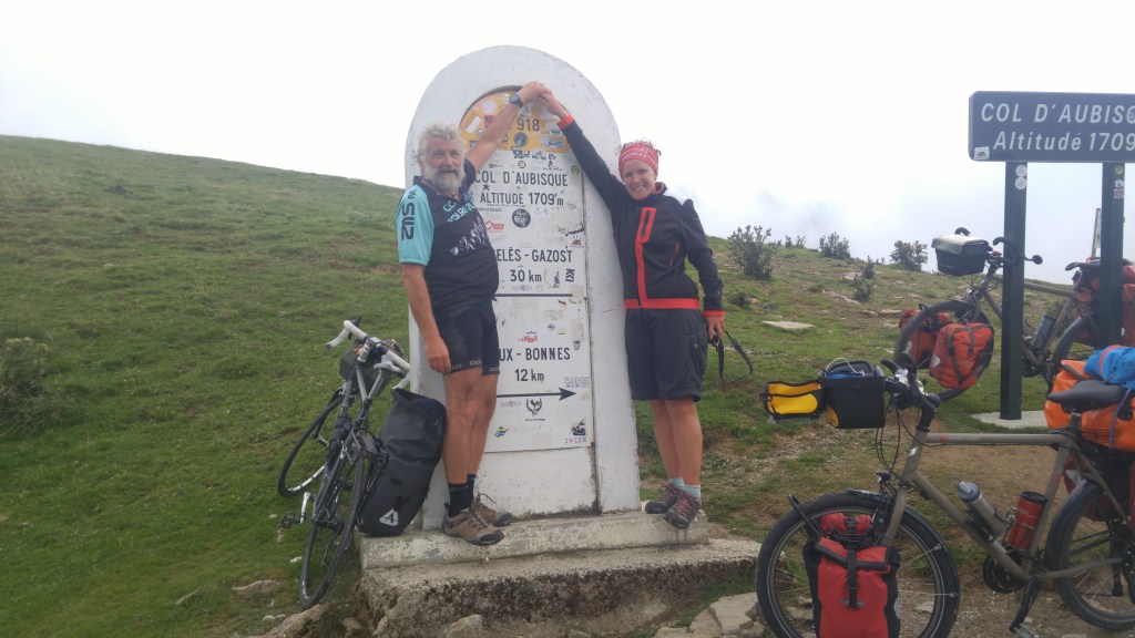 Col international un peu comme le Tourmalet, mais avec plus d’intimité puisque nous discutons avec un vélo voyageur canadien puis nous serons rejoints par un couple de hollandais. Je reste en admiration devant la silhouette de l’homme ventripotent et court sur pattes qui avait dû fournir un gros effort car la montée depuis Laruns est très exigeante.