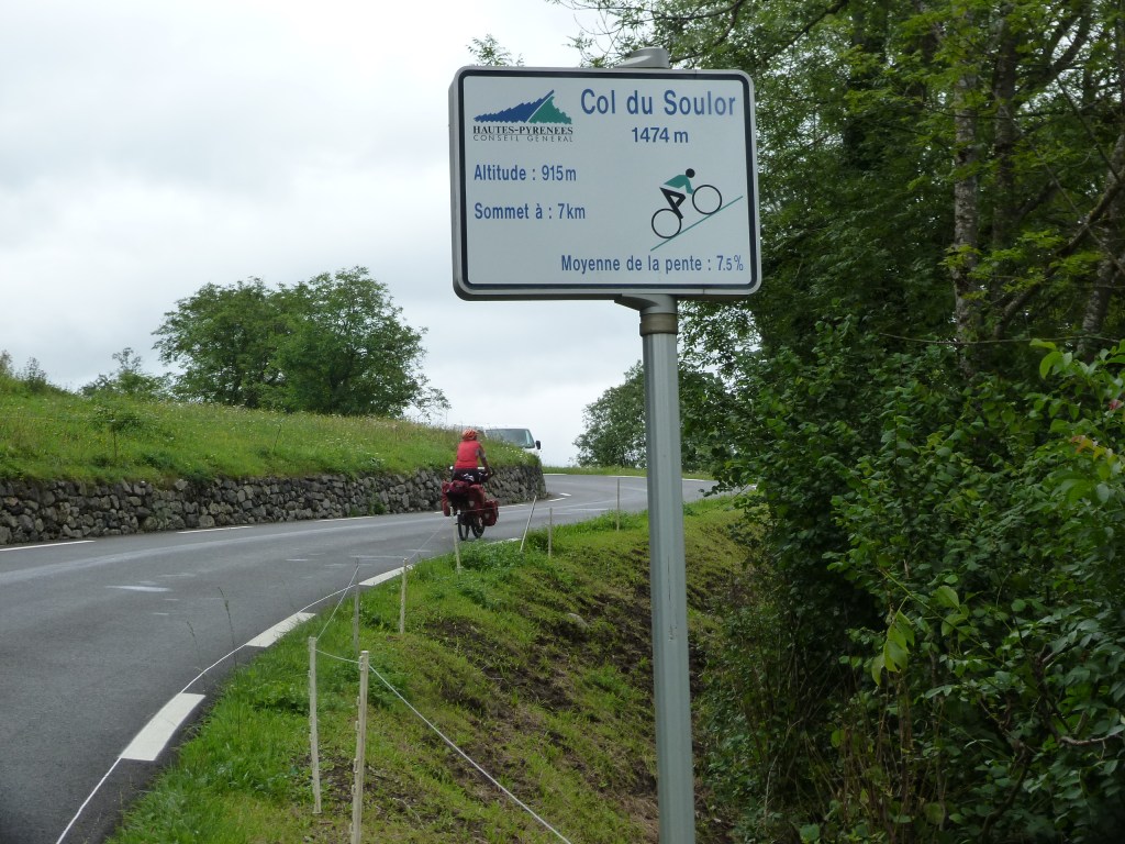 Nous quittons le camping de bonne heure sous une petite bruine. La route que nous empruntons est bien fréquenté jusqu’à Argelès Gazost. On s’y Ravitaille au marché, mais c’est aussi le début de l’ascension du col de Soulor. Nous attendent, 19 kilomètres très irréguliers et une fin difficile avec  les huits derniers kilomètres variant entre 7 et 10% ;