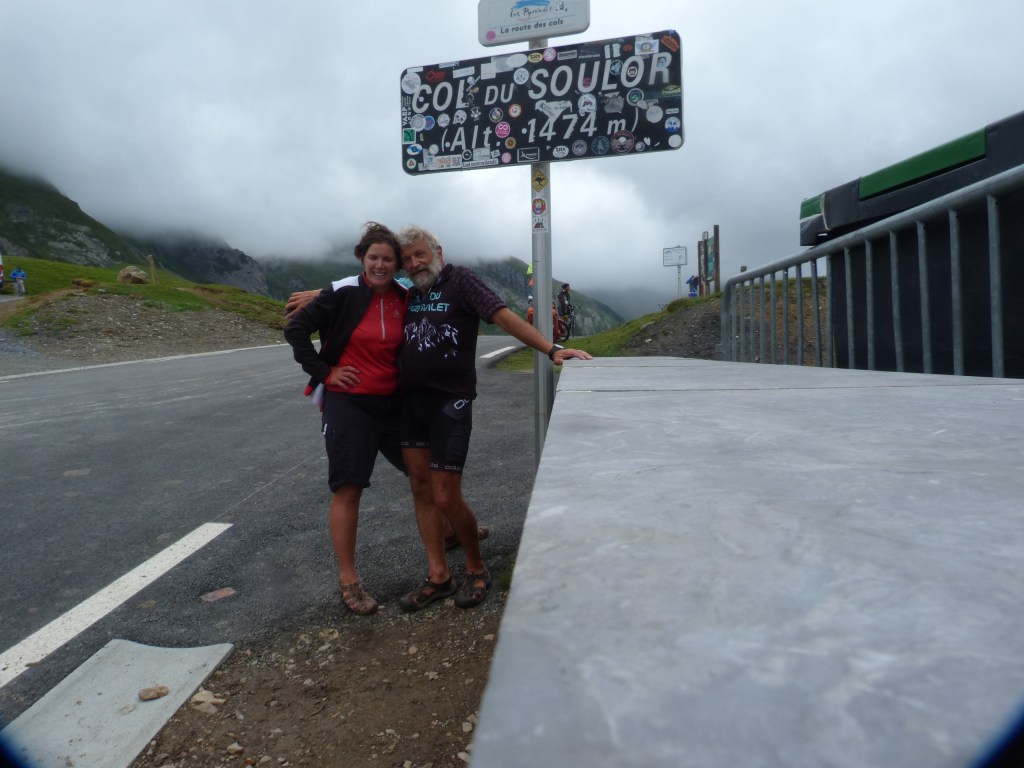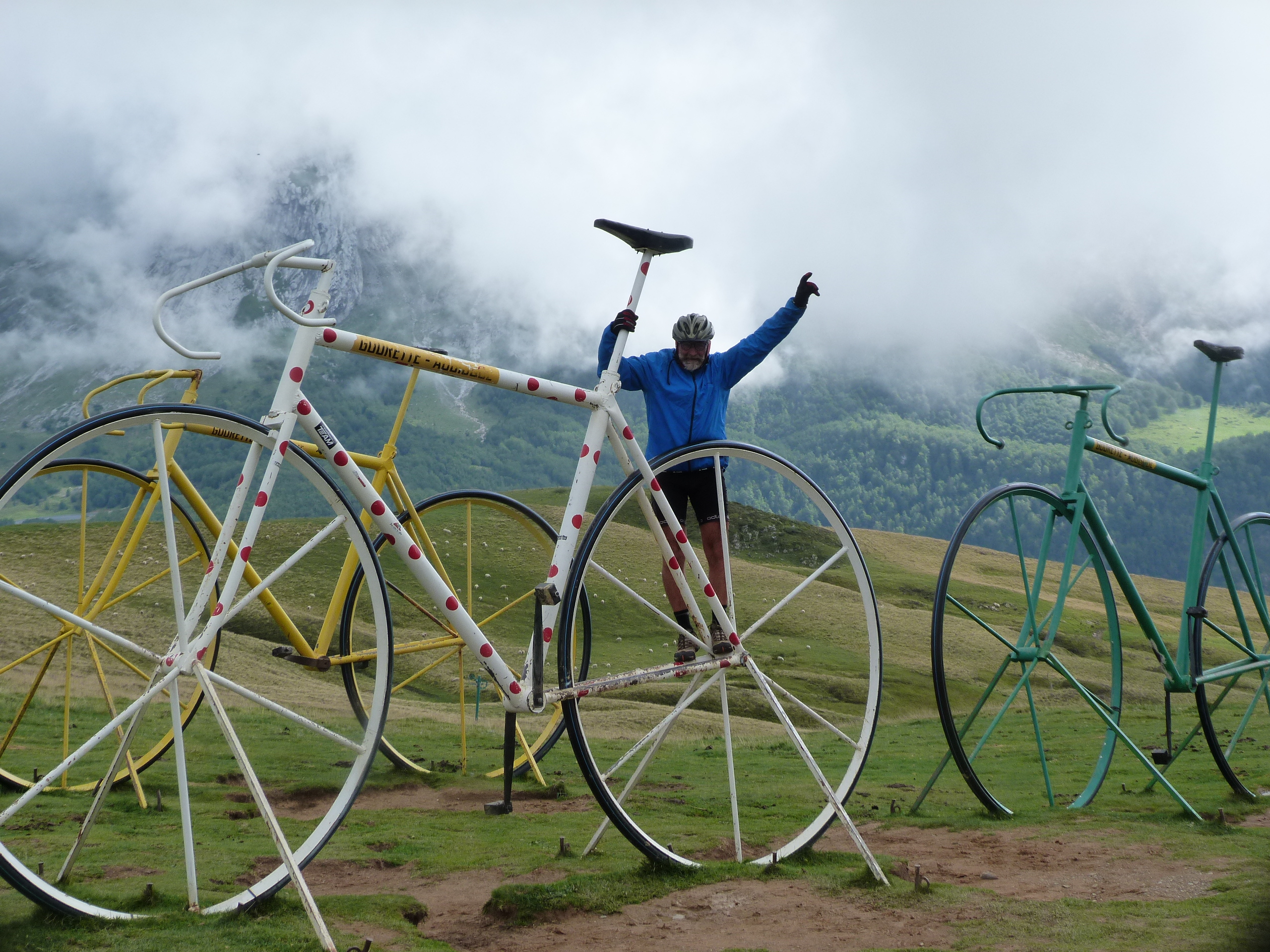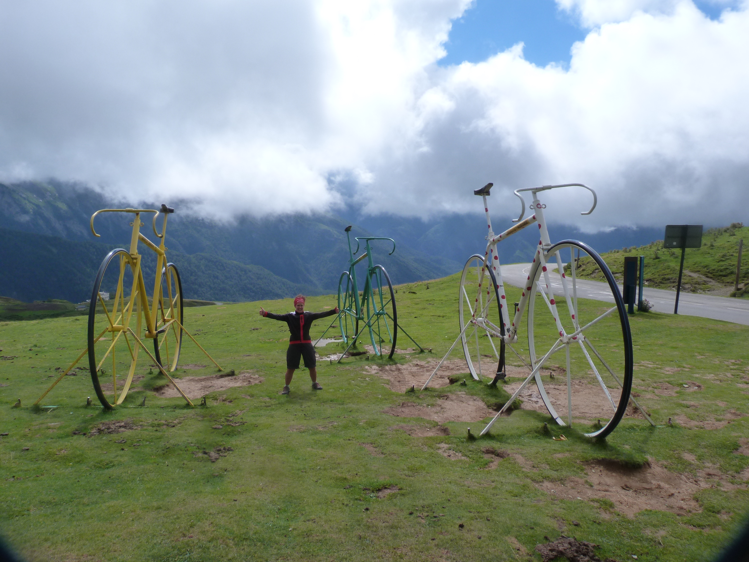 Pour un passionné de vélo comme moi ce n’est pas rien de franchir ce col vu et revu lors des tours de France où temps de batailles, d’effort se déroulent sur ses flancs. D’ailleurs trois vélos géants sont implantés pour rappeler les trois maillots des différents classements et c’est avec émotion et fierté que nous nous sommes amusés à la photo sur ces derniers.
