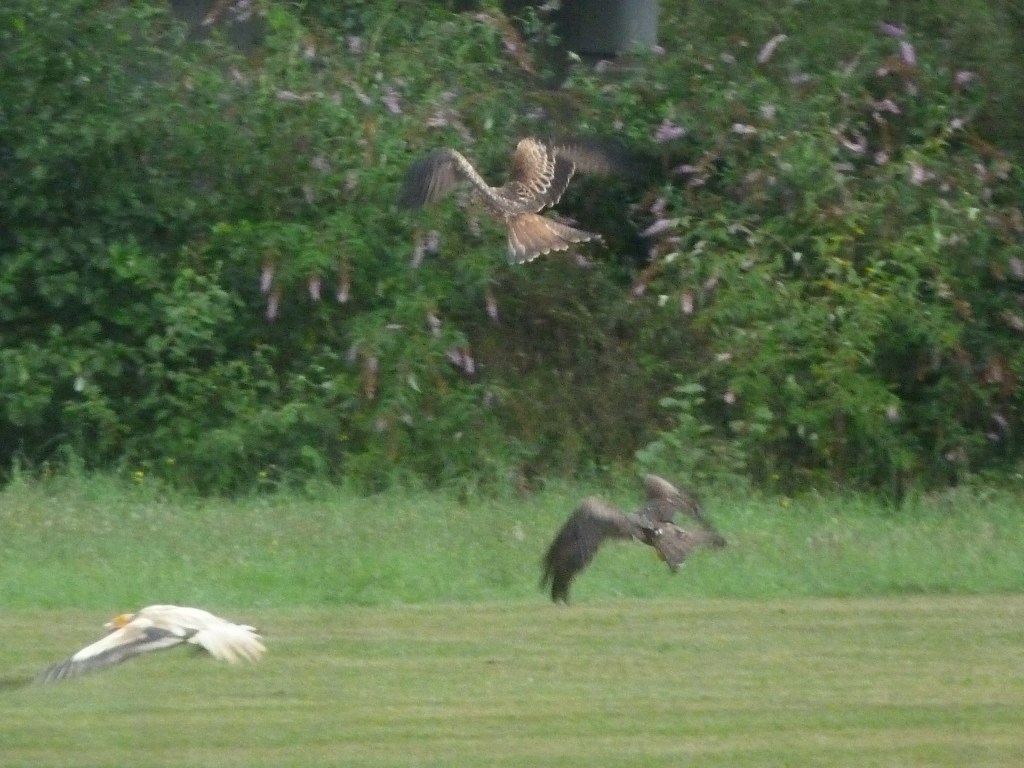 Laetitia se régale, non pas en se bataillant avec les rapaces pour avoir son morceau de viande, mais du vol de ces derniers et de leur adresse. Les milans savent attraper un morceau de viande sans se poser au sol, par contre le poids du vautour lui impose pied à terre.