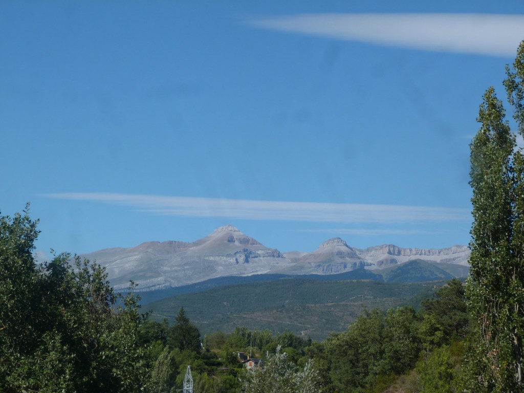 nous voici parti pour l’Espagne et nous arrivons à Canfranc sous un soleil merveilleux. Nous filons sur Jaca, mais n’oublions pas de jeter un œil voir les deux sur ces sommets sans nuages se découpant dans un magnifique ciel bleu.