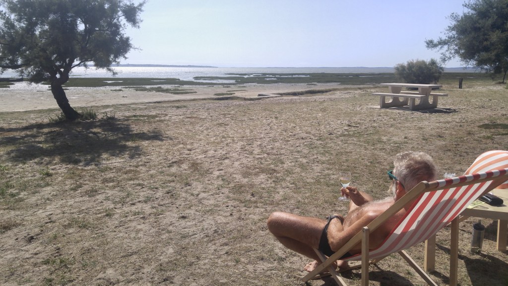 Nous resterons hébétés devant la profusion d’oiseaux que nous méconaissons. Pour nous remettre quoi de mieux qu’un verre de blanc allongé dans une chaise longue face à la mer proposé par un bar inclassable.