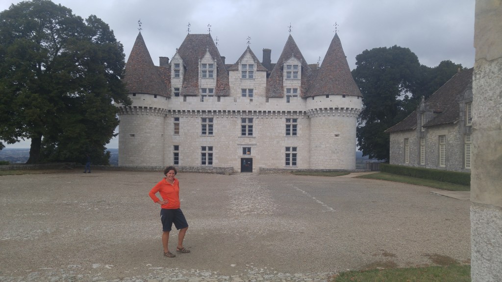 Au pied d’une descente alors que j’ai une certaine vitesse, qu’elle surprise nous croisons nos hôtes de Bordeaux en vélo qui partent pour quelques jours. S’ensuit une discussion en bord de route et ils reprennent leur chemin alors que nous arrivons à Bergerac. Nous laissons nos vélos pour une visite de la ville.