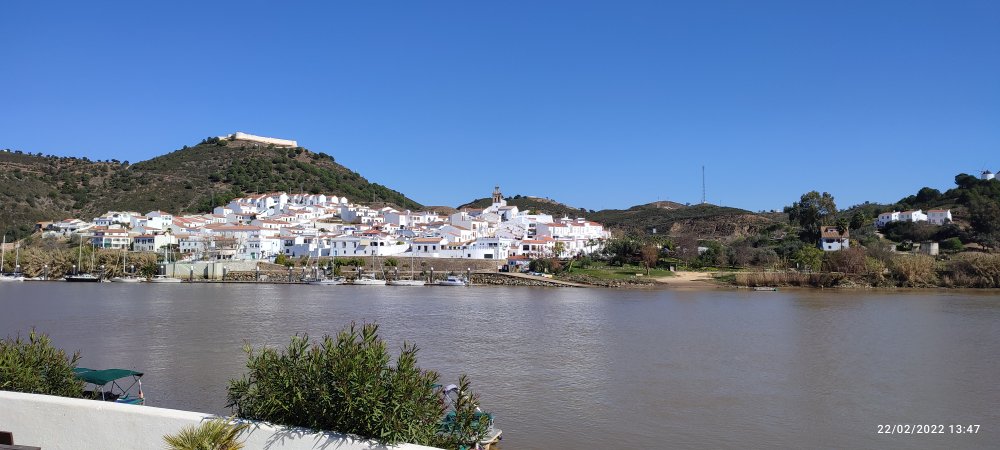 Apres avoir parcouru une belle route sinueuse où notre chauffeur fut attentif à nos estomacs en roulant précautionneusement, nous arrivons à Alcoutim. C’est un joli village blanc accroché a la coline qui descend jusqu’au bord du fleuve Guadiana frontière naturelle entre le Portugal et L’Espagne.
