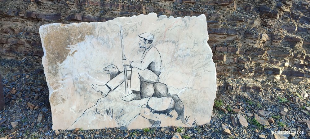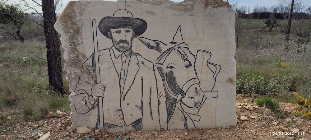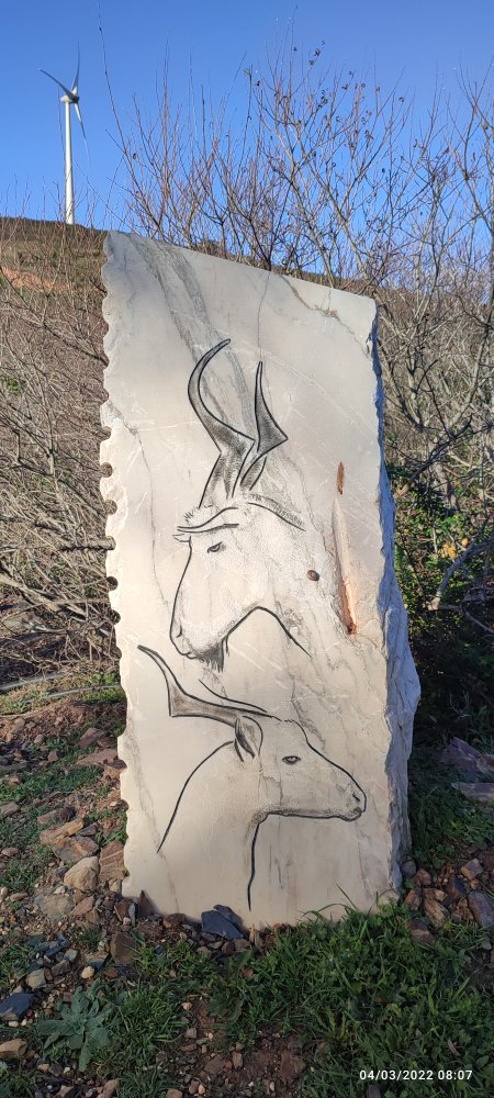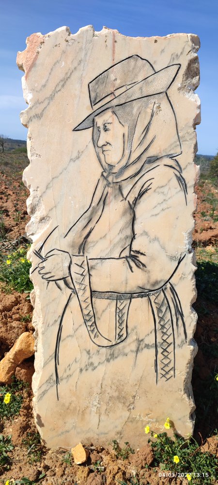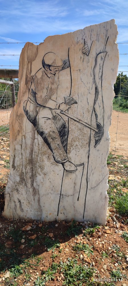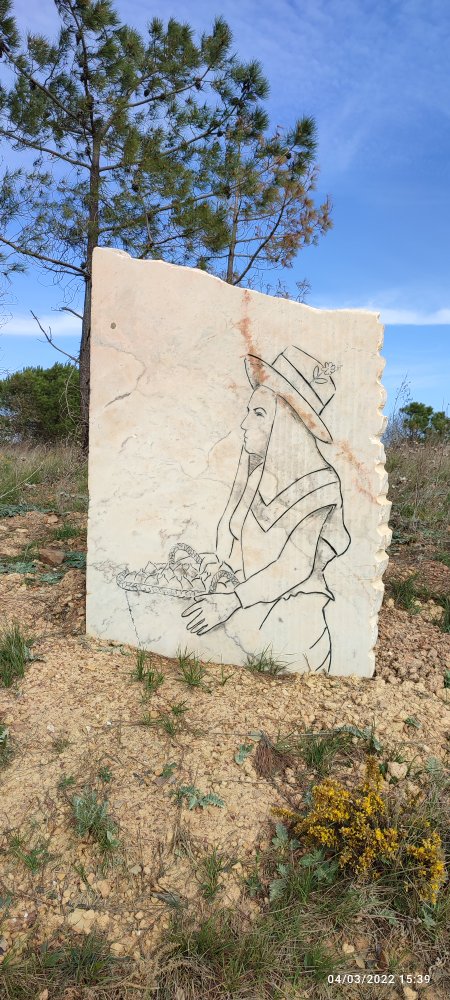 Le soleil brille et accompagne nos premiers pas, nous avançons dans une grande vallée avec beaucoup de verdure. Dans cette partie de la Via Algarviana des dalles de marbre sont gravées et représentent des métiers de la vie agricole de l’Algarve, dont certains ont disparus.