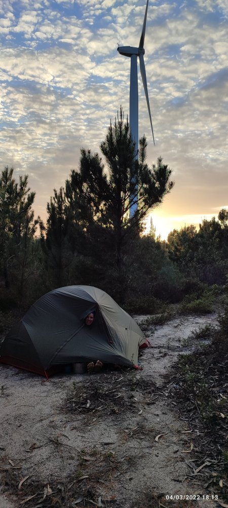 Nous avons bien dormi dans ce petit coin du Portugal, l’aube se pointe; le silence de la nuit est encore présent, il est rompu par le chant du rossignol des rivières 🐦 qui se trouve dans un buisson à proximité de la tente.