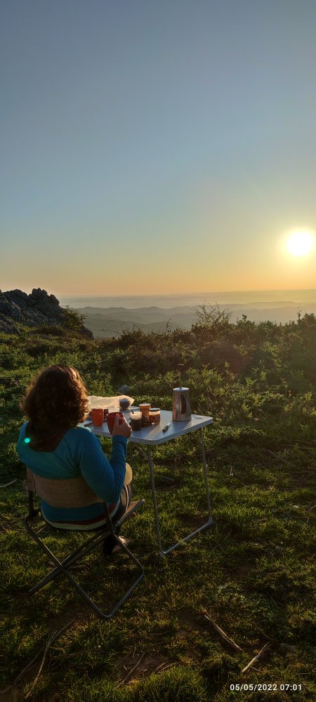 Debout à 6 heures pour profiter du lever de l’astre majestueux, ce sont des instants que nous vénérons. L’élévation lente de l’astre qui va nous réchauffer tout au long de la journée. C’est prodigieux de se dire qu’il y a 100 ans, voire 1000 ans et peut-être plus des Hommes à cet endroit ont bénéficier du même spectacle. C’est même méditatif sur notre comportement actuel.