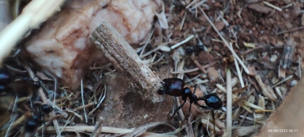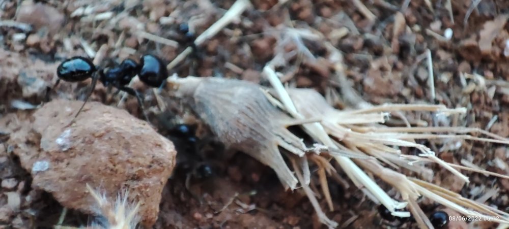 A genoux, par terre j’observe et c’est des heures durant que je pourrais regarder leur manège. Elles vont dans un sens, repartent dans l’autre. Tirent, poussent, portent dans leurs mandibules des herbes trois fois comme elles. Elles s’entraident, laissent leur récolte, partent en reconnaissance et reviennent chercher l’épis nécessaire. C’est époustouflant.