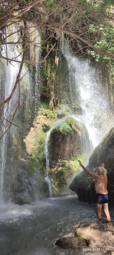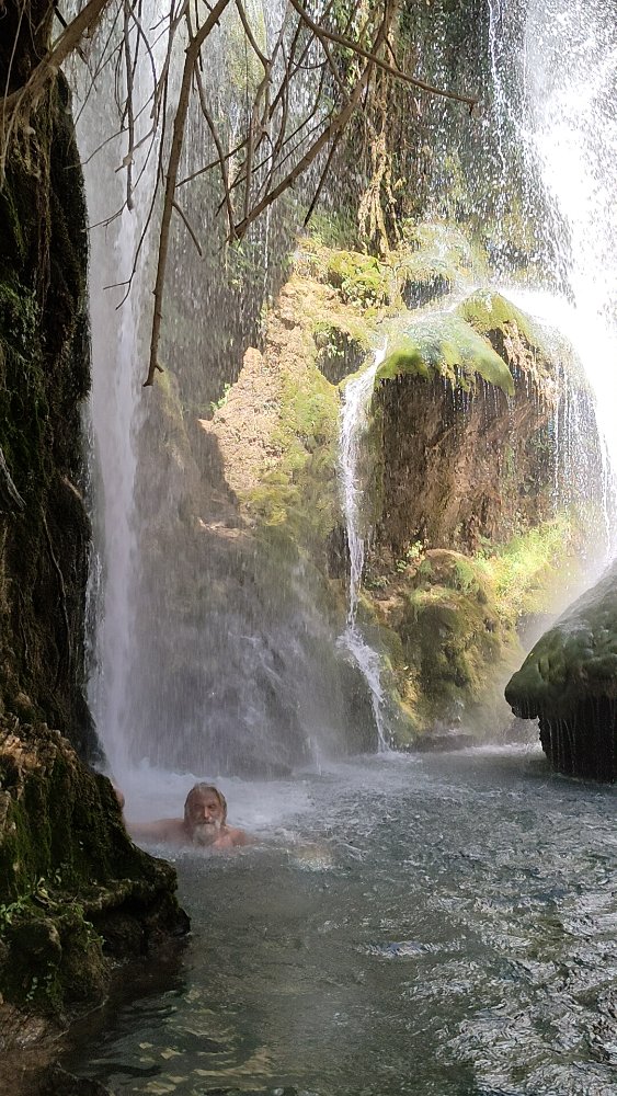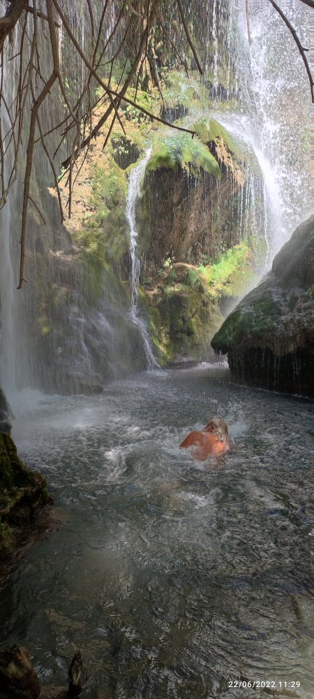 Nous parvenons dans le fond de la vallée à la rencontre d’une source d’eau tiède entre 15 et 20 °.