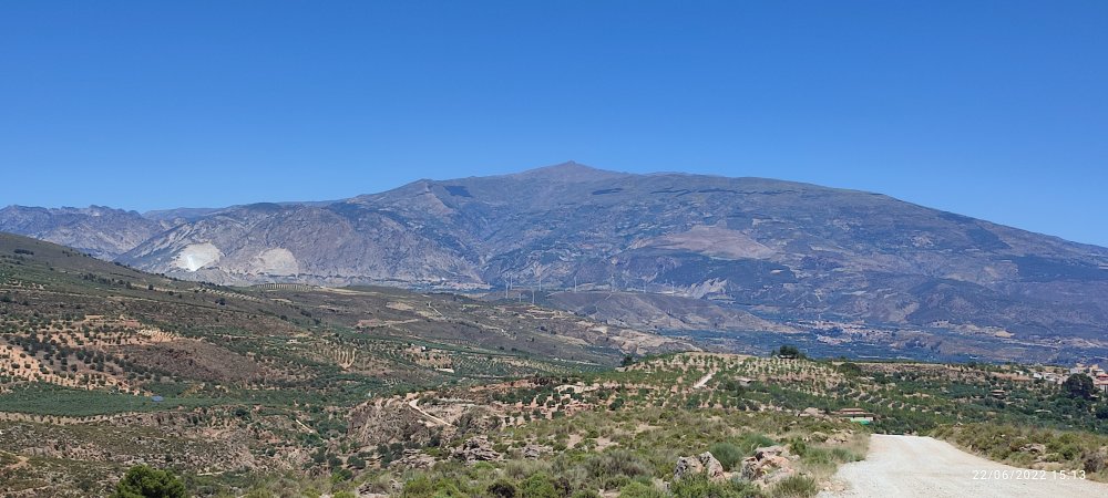Au détour du chemin voici à nouveau le pico Veleta 3396 mètres d’altitude qui nous domine. Sur ces flancs se trouve la route la plus haute d’Europe, nous l’avons grimpée avec nos vélos chargés en septembre de l’an dernier. Vous pouvez retrouver cette histoire sur ce blog aux dates des 18 et 19 septembre 2021.