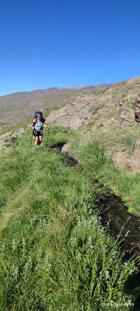 Voici le moment où nous devons quitter le bord du torrent. Et partons tout schuss en direction du puerto de Trevelez.