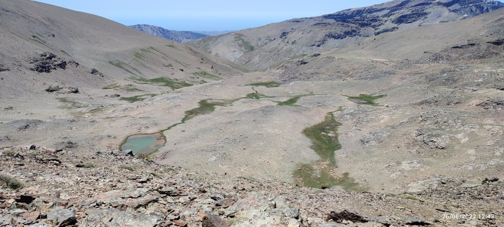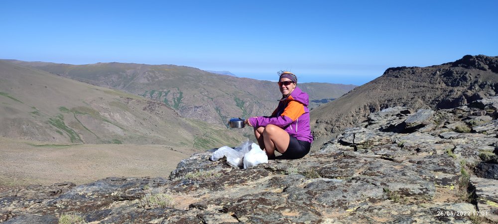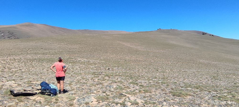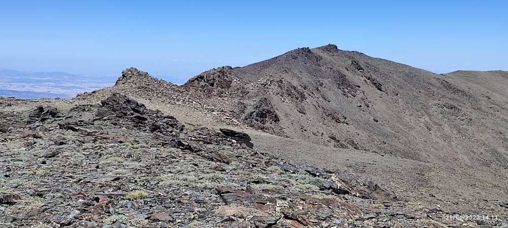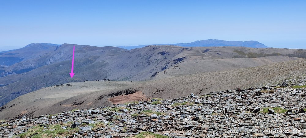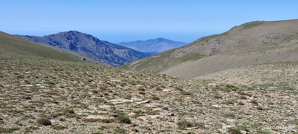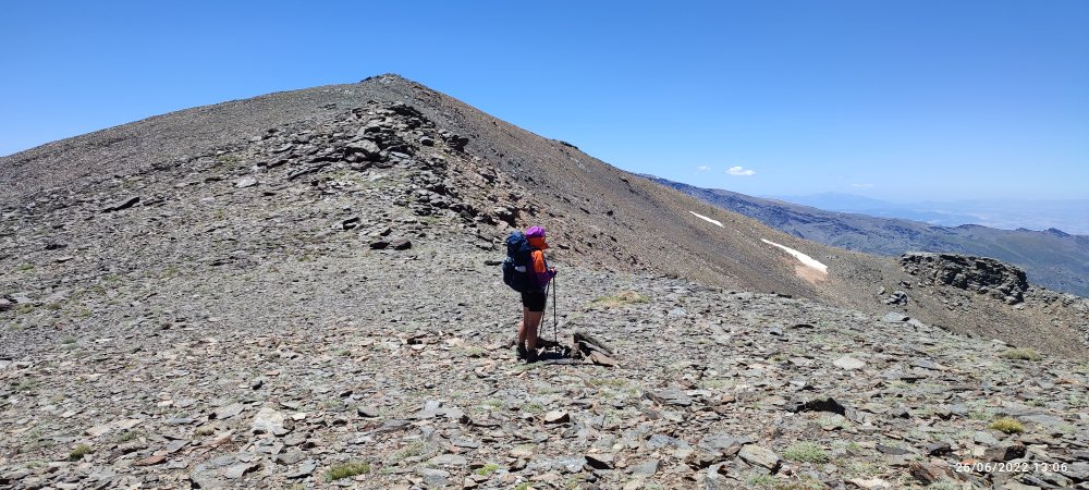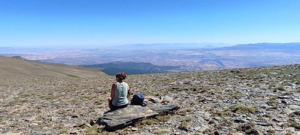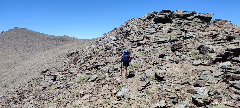 En définitive c’est facile nous faisons du toboggan, on descend, on prend notre élan et nous voici au sommet du 3000 suivant… Et de temps en temps nous levons la tête pour apercevoir le Veleta à droite et le Mulhacen à gauche.