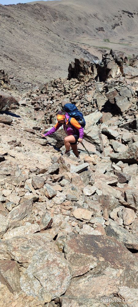 Un espèce de sentier se dessine au milieu des pierres et des roches. Après quelques heures de marche nous arrivons à ce fameux col à 2800 mètres d’altitude.