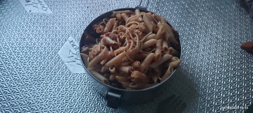 Pour cela petit déjeuner copieux: spaghettis bolognaise froides, ça passe bien !😋