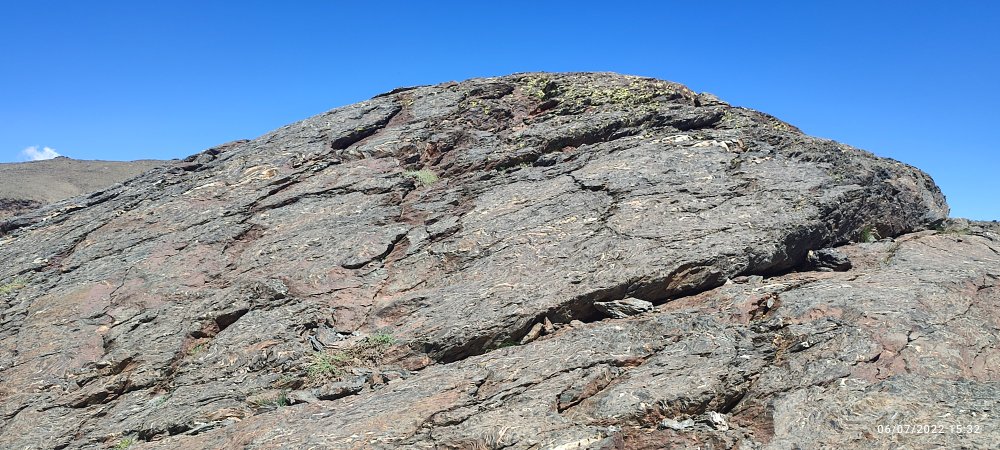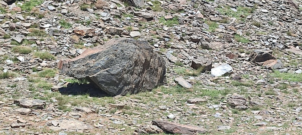 Et celle-ci au forme arrondie certainement usée par un glacier, nous ne sommes pas spécialisés en géologie, mais tout cela nous fait penser à de la roche volcanique pour avoir déjà trainé nos chaussures en Islande ou au Piton des Neiges sur l’île de la Réunion.