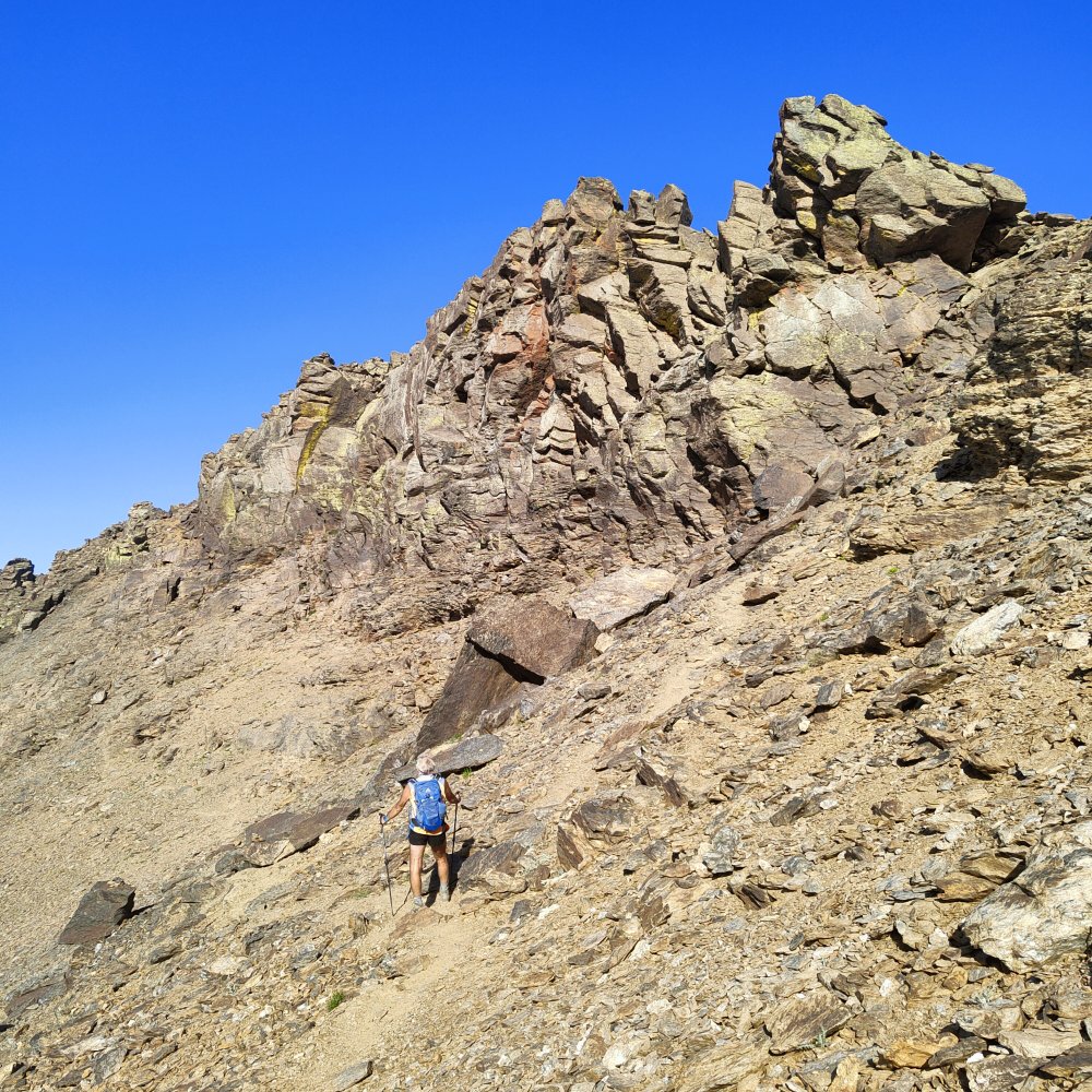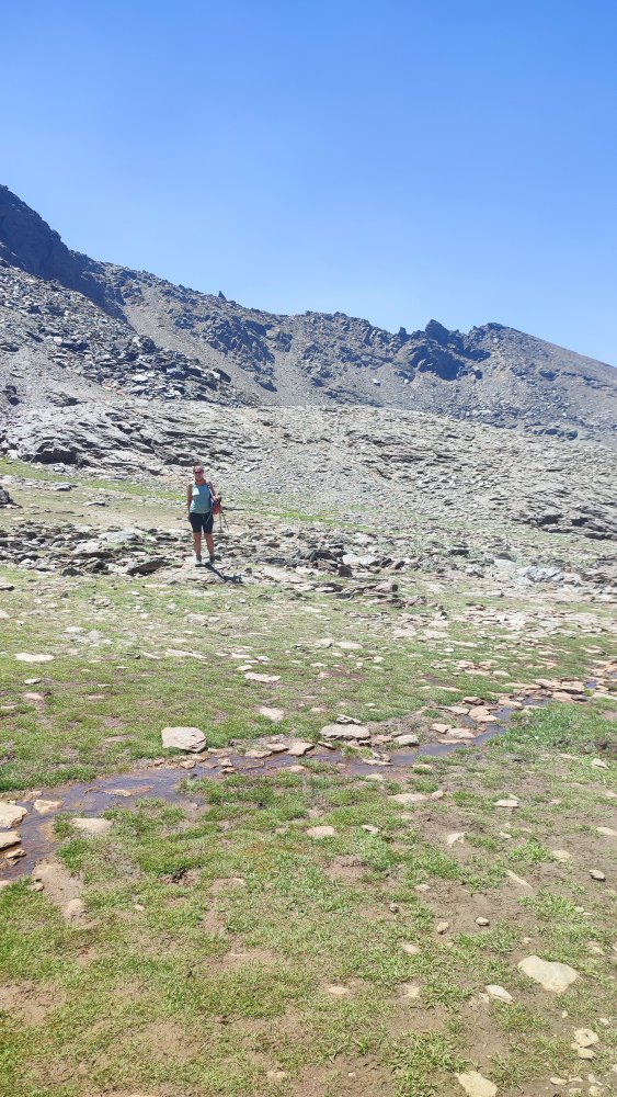 Mais notre objectif n’est pas le pico Veleta mais une crête rocheuse qui bloque la vallée à une altitude variant de 3000 à 3200 mètres.