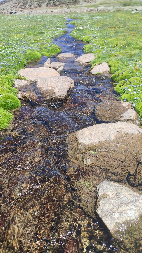 Après la roche, le vent et l’altitude, la couleur verte revigorante, le clapotis de l’eau du ru et la douceur des petites fleurs offrent à nos sens de la plénitude.