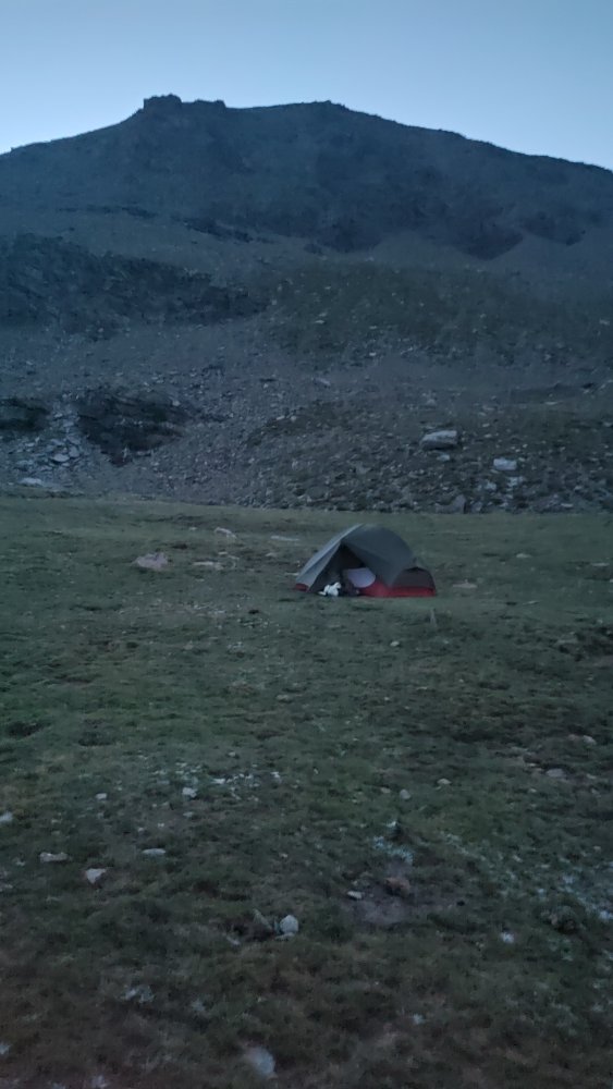 Effectivement une belle plate forme domine la vallée, encore quelques pas et nous dénichons le lieu où nous pourrons récupérer, afin d’être en forme au petit matin.