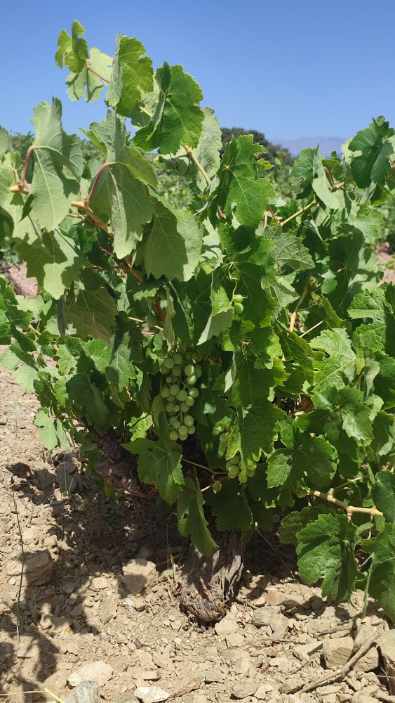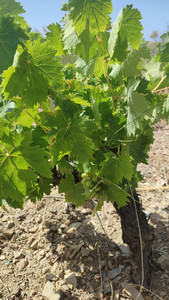 Ce sont de touts petits ceps qui poussent dans un terrain de sable et caillasse.