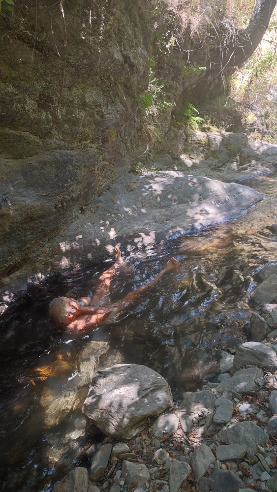 Ce sentier nous amène le long du torrent et par ces chaleurs l’eau fraiche est irrésistible. Cela devient presque une routine. (Voir nos escapades précédentes)