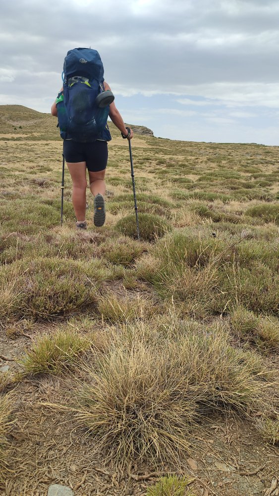 Après une belle descente au milieu de ces buissons qui tentent de griffer nos mollets, il est évident que nous abordons une pente où nous traçons nous même notre sentier en lacets afin de ne pas nous épuiser à monter tout droit.