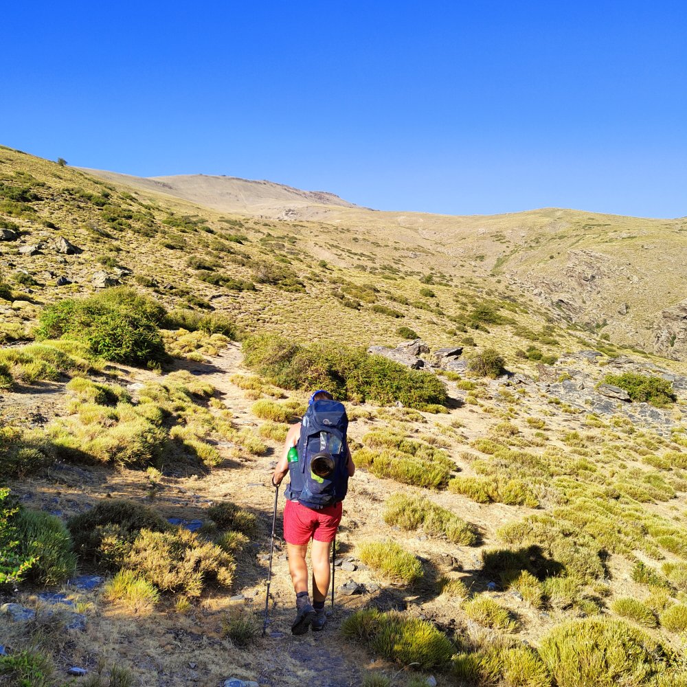 Nous sommes prêts pour poursuivre et nous commençons par une descente. Les muscles à ce moment nous rappellent ce que nous leur avons déjà demandé en effort hier. Nous les écoutons et ralentissont le rythme pour leur donner le temps de s’échauffer.