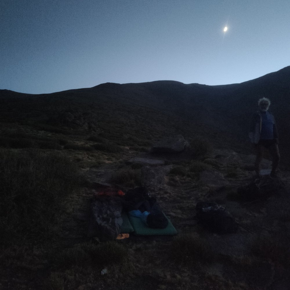 On marche en sachant qu’il nous sera difficile de rejoindre le fourgon dans la nuit avec des sentiers non balisés. J’ai bien ma frontale, mais c’est un peu léger et en ce moment nous ne pouvons pas compter sur le croissant minuscule de la lune pour nous apporter un peu de luminosité.