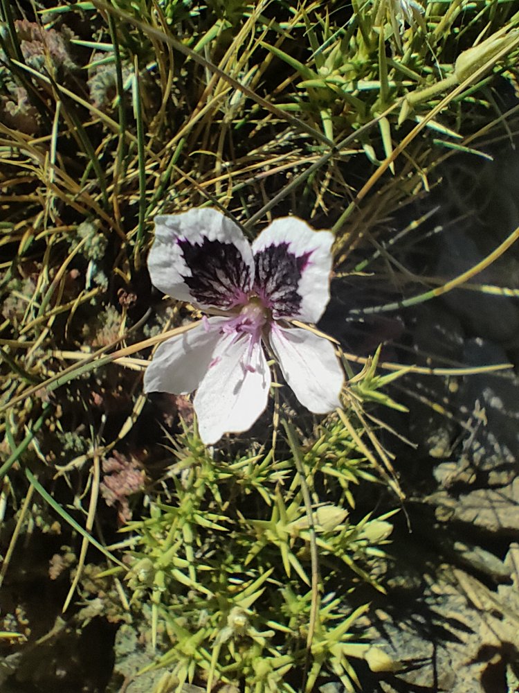 Ce qui nous époustoufle depuis que nous randonnons dans ce massif, c’est de voir la beauté des fleurs. Celle-ci trouve la force de pousser au milieu des pierres, dans un terrain très sec, avec des écarts de températures importants et un vent a déraciner les cornes d’un boeuf.