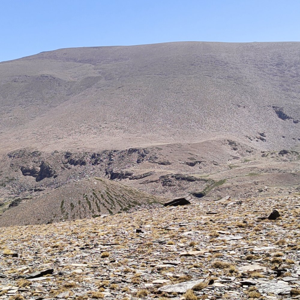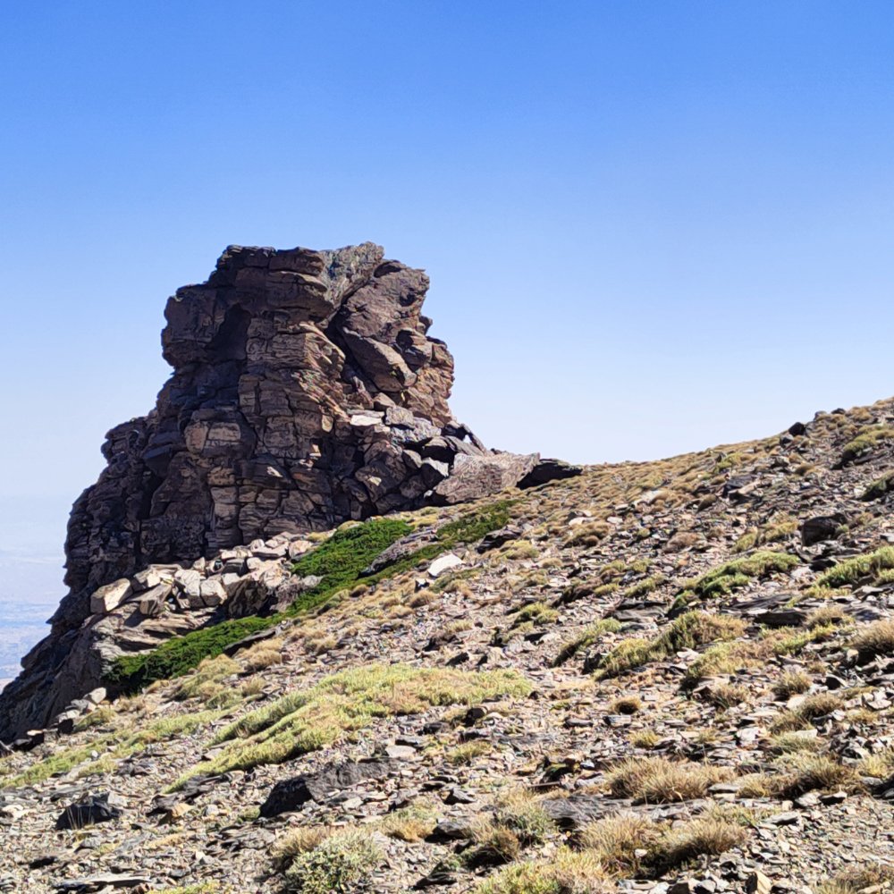 Depuis le début nous avons cette sensation de roches volcanique surtout en constatant les cassés du Veleta et Mulhacen qui font penser à l’effondrement d’une Caldera. Laetitia dit souvent que les paysages lui font penser à l’île de la Réunion. Nous avons cherché sur internet et n’avons pas trouvé de réponse.