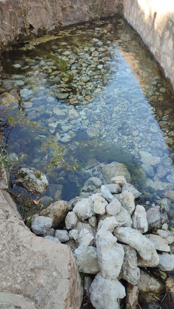 Nous partons depuis la source de la Gitane, une résurgence d’eau d’une pureté et d’une clarté incroyable ou régulièrement des bulles se libères.