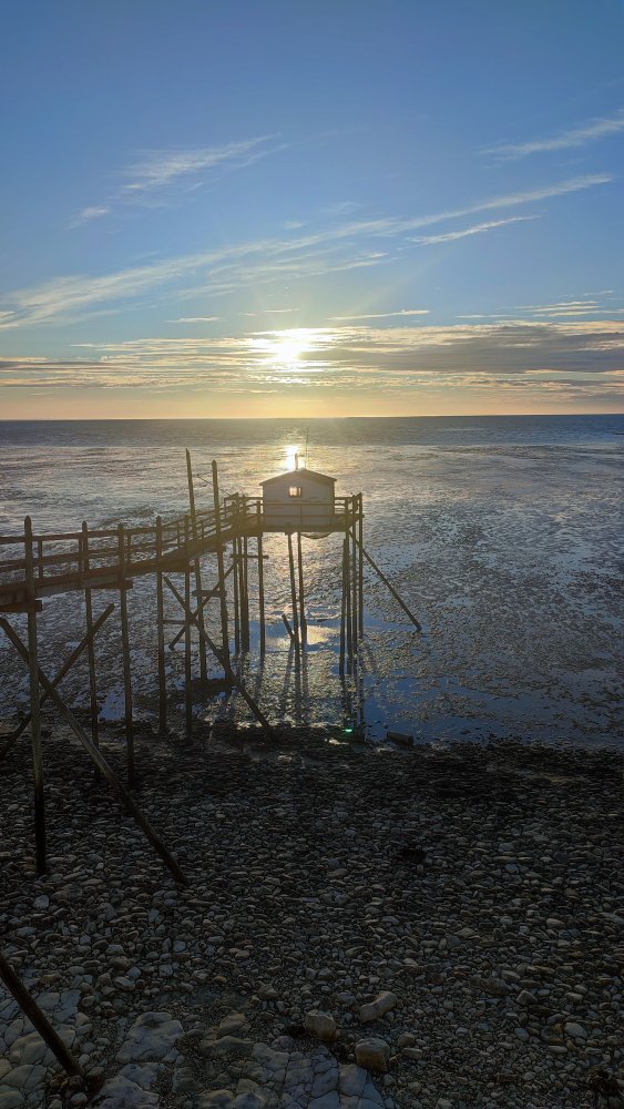 De l’estuaire de la Gironde à celui de la Loire, des pontons en bois s’avance vers la mer, ils se terminent par un abri afin de protéger le pêcheur, parfois sa famille qui pêche au carrelet.