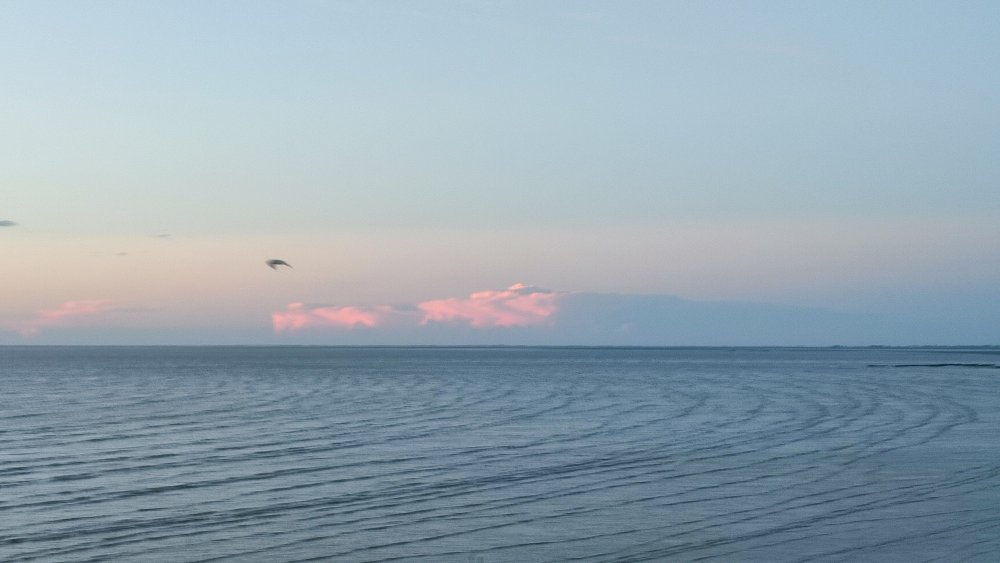 Un jeu de lumière avec des nuages d’orage et une mouette baladeuse.