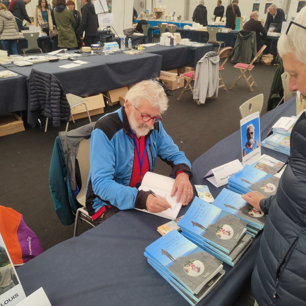 Le grand moment arrive, me voici avec de nombreux autres écrivains, dont certain avec une grande renommée, derrière ma table à présenter mon livre « Cheminer du rêve à la vie à vélo ».