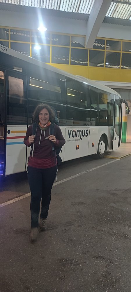 Après une bonne demi-heure de marche nous voici à l’arrêt de bus. Habillé en short, je dois refroidir les quelques personnes qui attendent avec nous, car ils tapent du pied et soufflent dans leurs mains.