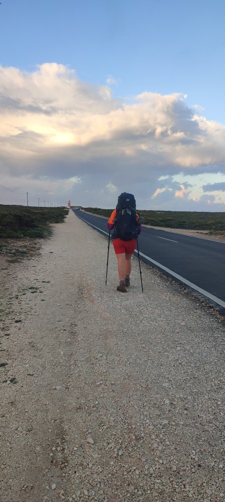 Cela se mérite que de parvenir à l’extrême sud-ouest de l’Europe, il paraît que les premiers hommes qui sont arrivés ici, se croyaient au bout du monde. Aujourd’hui cela à bien changé et nous sommes bien content de longer la route le matin, alors que les nombreux touristes dorment encore et nous laisse dans le repos du randonneur sur ces quelques kilomètres.