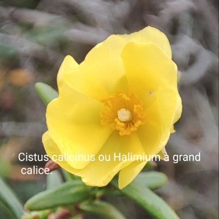 Un ciste jaune, le ciste dégage sur ses feuilles une huile qui les rendent collantes mais cela embaume l’air d’un doux parfum musqué.