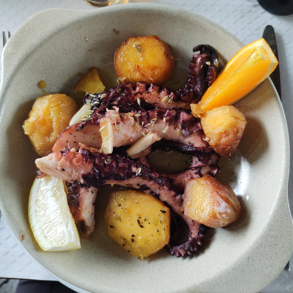 Nous mangeons des spécialités, c’est un vrai régal et quand je parle de régal, je vous garanti que c’est explosif dans notre palet. Farinha de morcella, tentacules de poulpe avec des patates douces..