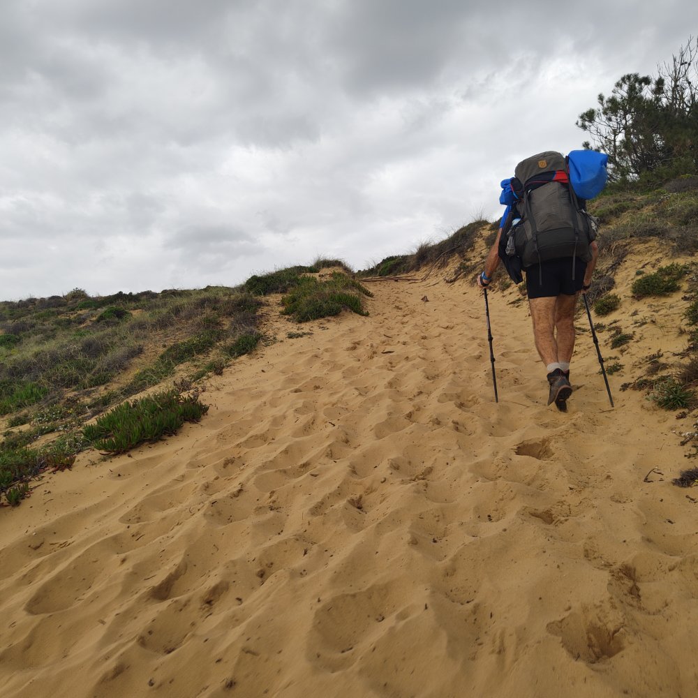 Il nous faut suivre la rivière Ceixe et remonter vers Odeceixe, mais il est important de vider le sable qui est dans nos chaussures.