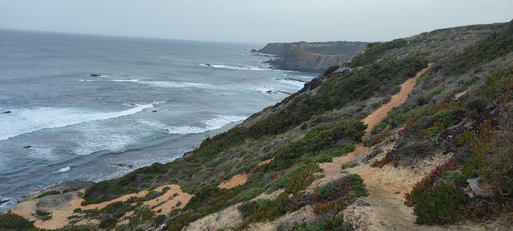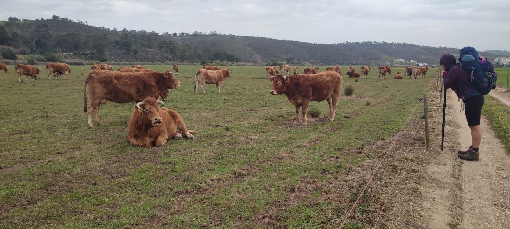 Enfin nous voici propres, nos chaussettes aussi et nous repartons d’un bon pas pour arriver à Odeceixe. Mais avant cela nous croiserons un troupeau de vache paisible aux magnifiques cornes. Impossible pour nous de ne pas leur dire quelques mots et l’avantage, le langage est universel.