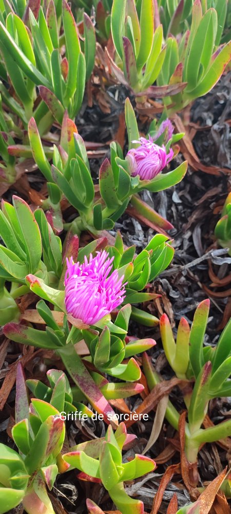 Je vous presente des fleurs invasives qui ne sont pas originaires d’ici. Les griffes de sorcière envahissent toutes les côtes, je sais qu’en Corse, ils tentent de s’en débarrasser en les arrachant.