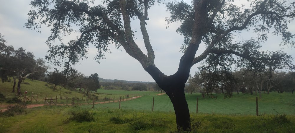 Ce matin il ne fait vraiment pas chaud, mais cela ne nous empêche pas d’apprécier ce paysage bucolique et les chênes liège.