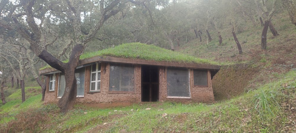 Plus loin, nous voyons des projets qui n’ont pas aboutit, une maison en paille et torchi avec un toit végétal qui ce dégrade, quel dommage.