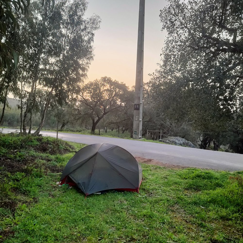 Le vent a rugi, mugit, vociféré toute la nuit, nous l’entendions dans les arbres et les câbles électriques qui n’étaient pas très loin, mais nous étions bien abrités. Nous sommes encore à 650 mètres d’altitude et ce matin il ne fait pas chaud.