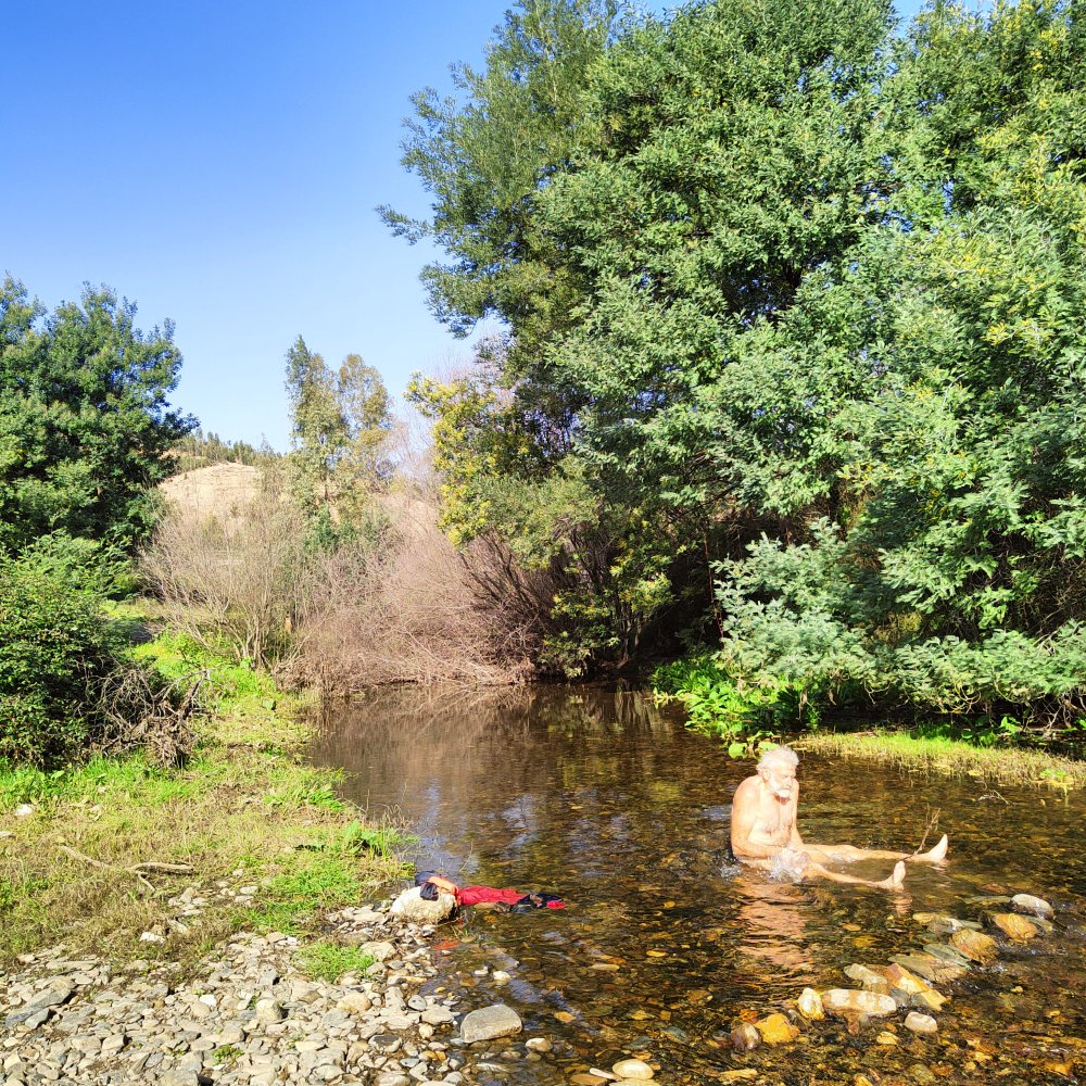 Enfin nous retrouvons le GR qui longe une rivière, le soleil brille dans le firmament et ses rayons nous chauffe bien. Alors nous en profitons pour une baignade.