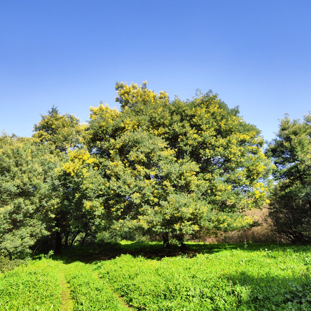 Nous passons au milieu de mimosas grandioses.