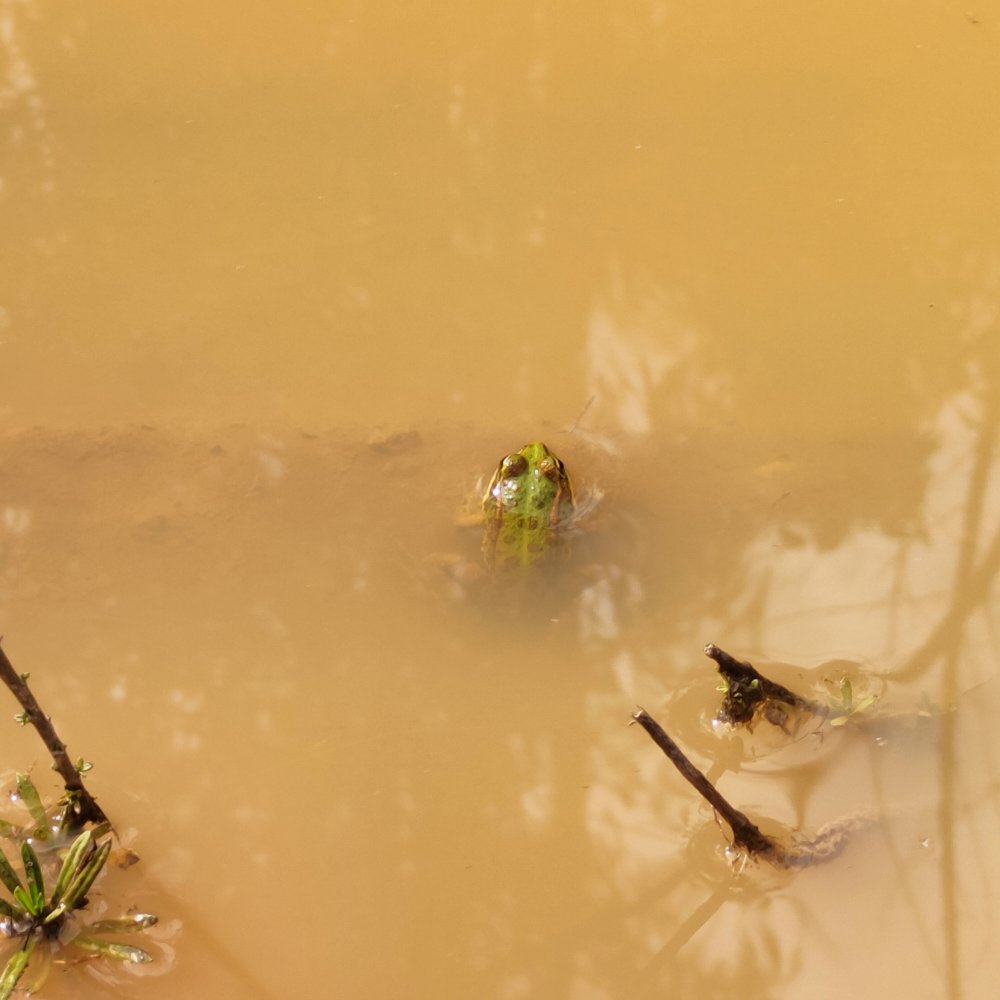 Nous passons un secteur humide et une grenouille se laisse photographier avant de disparaître en nous gratifiant d’un splendide saut.