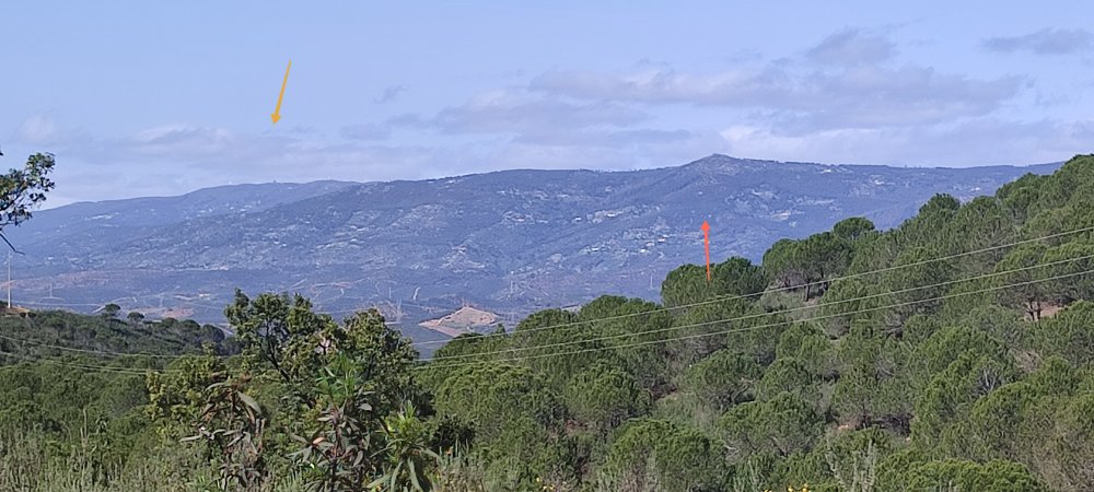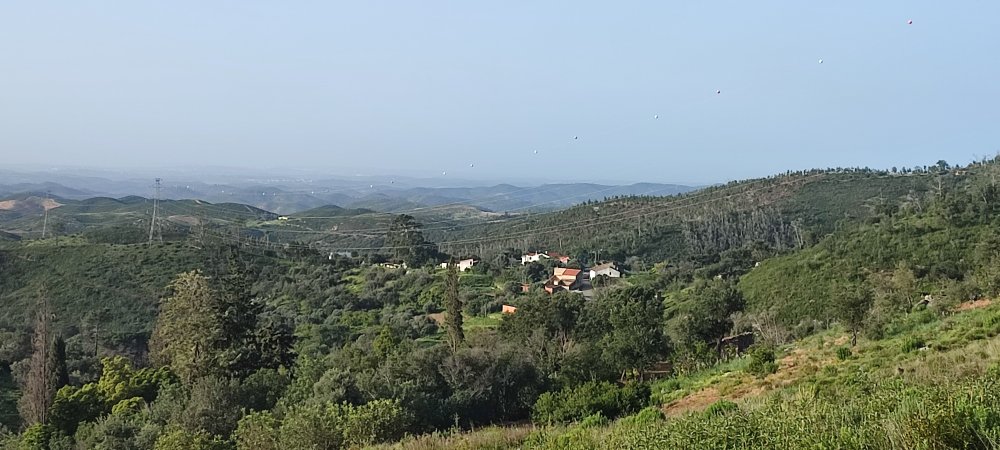 Nous voici à un observatoire et nous distinguons la ville de Silves, derrière nous la piste en montagne russe et au loin le massif de Monchique dans les nuages.