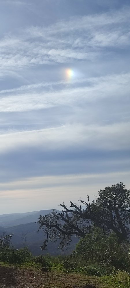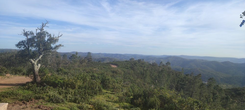 J’embrasse une vue incroyable sur la serra de Caldeirao et un minuscule arc en ciel parait entre deux petit nuages c’est incroyable et j’exulte de joie.