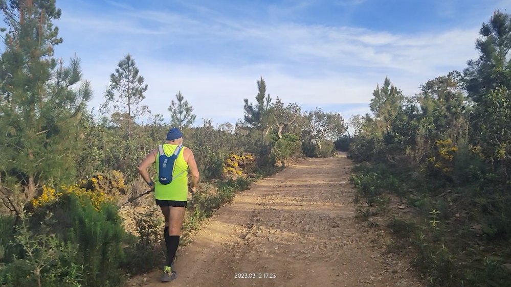 Sur cette piste de crête, j’alterne footing et marche. Je me suis mis une règle que je respecte avec rigueur dès que le chemin monte ou descend je marche afin de m’économiser, ce système doit être efficace car je suis presque à 40 kilomètres et je me sens bien.