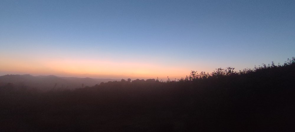 À perte de vue, les montagnes ondulent avec de temps à autre une éminence qui domine les crêtes, elles se marient avec le bleu du ciel, tout cela est accompagné par le gazouillis léger de quelques spécimens de la gente oiselesque.